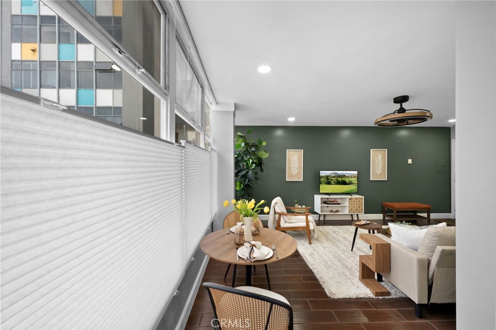 Significant PRICE Improvement! Welcome to Royal Palms, this iconic Mid-Century Modern building built in 1958, located in the vibrant East Village Arts District of Downtown Long Beach. This prime "LA Olympic" location is just two blocks from the beach, a short stroll to the Long Beach Convention Center, and minutes from popular attractions like the Aquarium of the Pacific, Long Beach Marina, and Belmont Shore Pier. This Remodeled 2-bedroom, 1-bathroom condo offers 730 sq. ft. of comfortable living space on the second floor with only one shared wall and no one below. Enjoy natural light streaming through large windows that span the living and dining areas, complemented by custom up-down blinds and blackout blinds in both bedrooms. The open floor plan features new luxury wood-tiled floors...