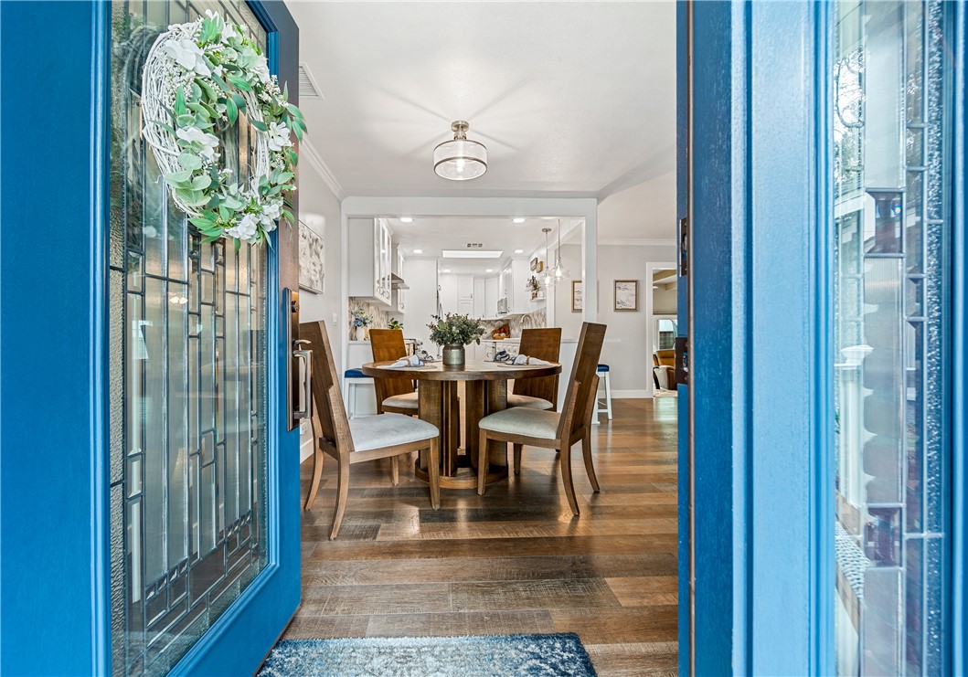 Charming Family Home with Captivating Features!! Welcome to this beautifully maintained family home, where every detail has been thoughtfully crafted to offer both tasteful style and comfort. From the moment you arrive, you'll be drawn in by the charming front porch--an ideal spot to unwind with a glass of wine while enjoying the sunset. As you step through the captivating front door, you'll be greeted by a custom-designed kitchen that seamlessly blends style with practicality. This heart of the home boasts custom white shaker cabinets with soft-close drawers, premium Quartz countertops, a designer tile backsplash, a wine refrigerator, and stainless steel appliances. The open layout allows the kitchen to flow effortlessly into the dining area, making it perfect for both everyday meals and special occasions. The adjacent living room, with its cozy fireplace, offers a warm and inviting space for relaxation. This room seamlessly connects to the spacious family room, a highlight of the home, where countless memories have been made during family game nights and lively karaoke parties. Nearby, a convenient study/office area provides a functional workspace with easy access to the garage. For those who love to entertain, the large glass sliders off the family room open up to the backyard, where a serene covered patio/gazebo awaits. The BBQ area is perfect for hosting outdoor gatherings and enjoying al fresco dining. Down the hallway, you'll find two guest bedrooms, each offering comfort and charm. The newly remodeled guest bath features chic black and white designer flooring, adding a touch of modern elegance. The roomy primary bedroom serves as a private retreat, complete with a charming barn door and a remodeled ensuite bathroom. Throughout the home, luxury vinyl wood floors provide a timeless and durable foundation, ensuring both style and functionality. Additional features include pull-down stairs leading to attic storage, enhancing the home's practicality. This property exudes meticulous attention to detail, combining style, comfort, and functionality in perfect harmony. Don't miss the opportunity to make this exceptional home your own!